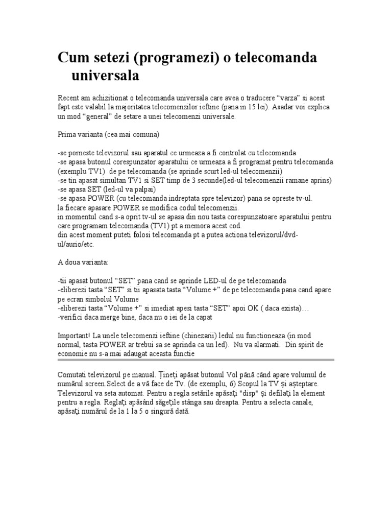 Telecomanda Universala Hama Manual Si Coduri Trucuri Si