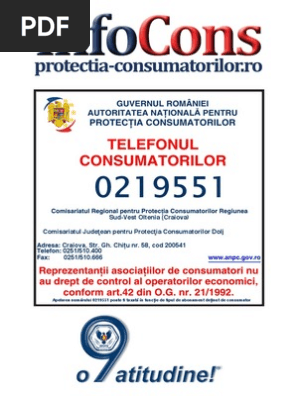 Pentru a descarcă placheta în format pdf alege regiunea. 72 2010 privind unele masuri de informare a consumatorilor pct 1. Autoritatea națională pentru protecția consumatorilor anpc desfășoară în această per. Protectia consumatorului este misiunea pe care ne am asumat o.